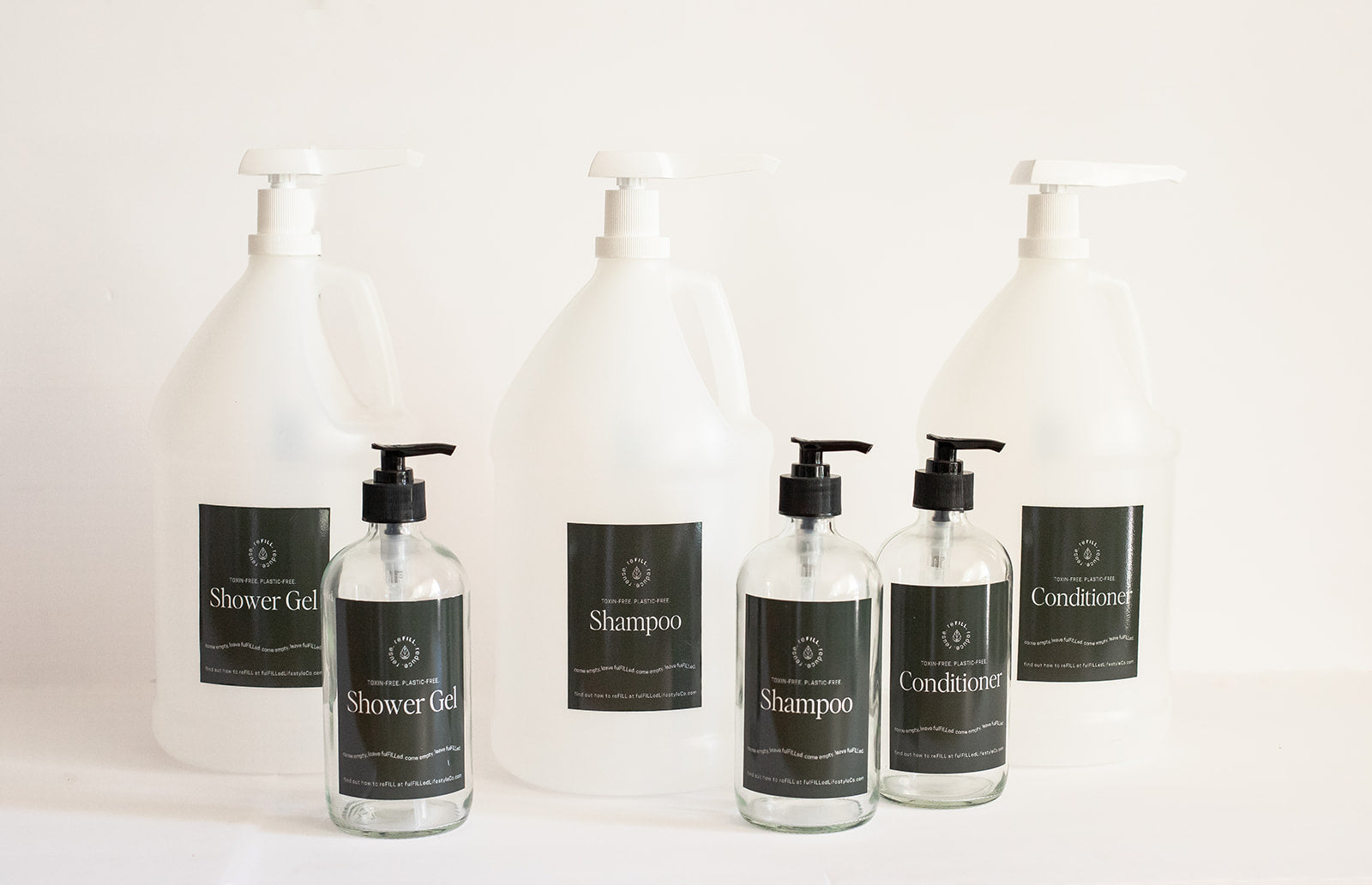 Make your bathroom a low-waste oasis. The Body Care reFILL Kit includes three of our most-loved essentials in generous gallon sizes—perfect for keeping your shower stocked, your routines simplified, and single-use plastic out of the equation.