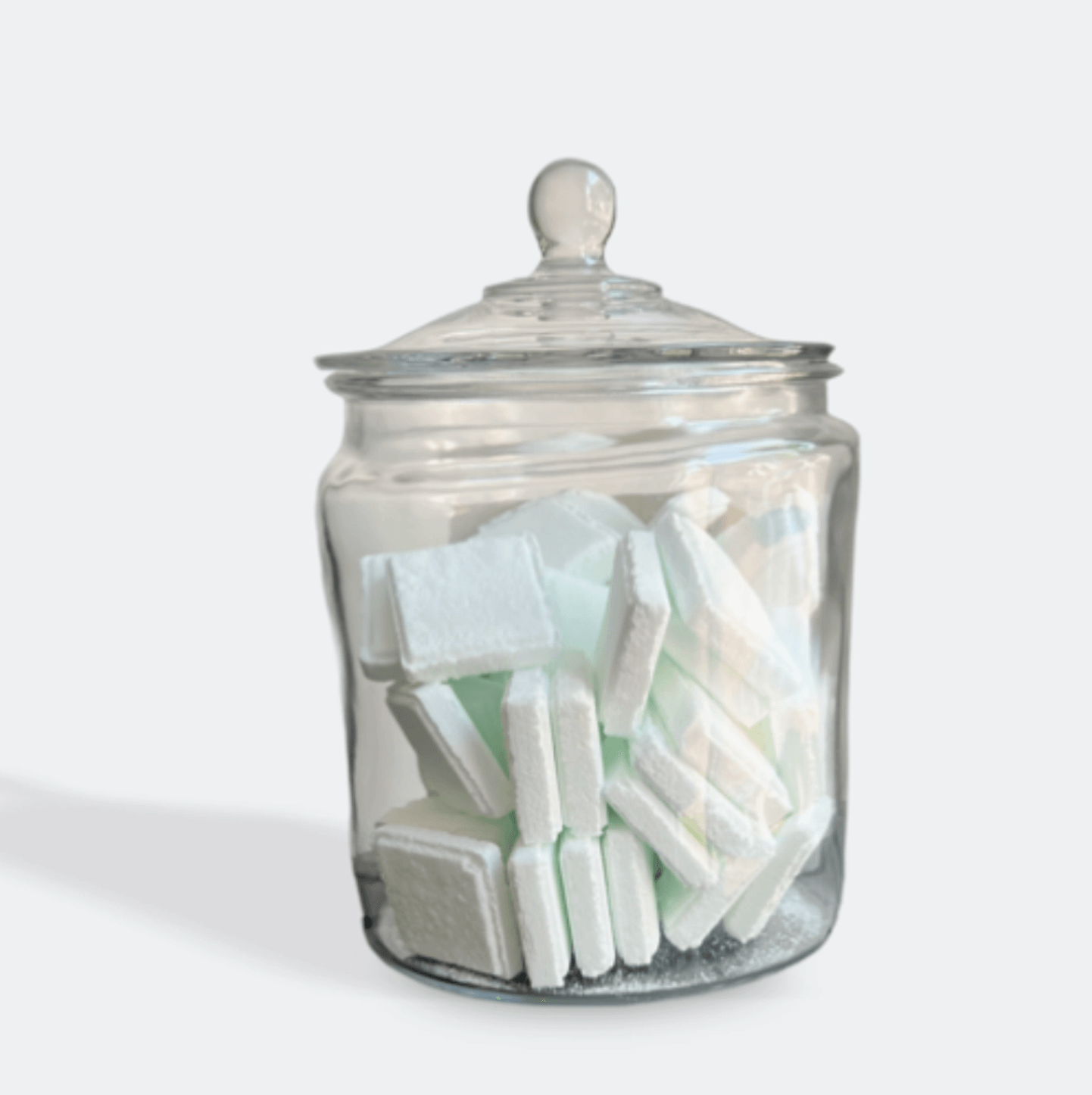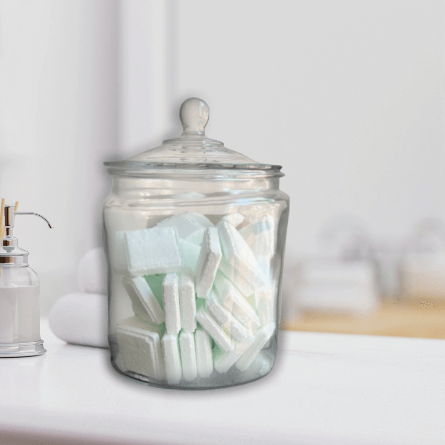 These toilet cleaner bombs are highly effective and plastic-free. Just toss them in the toilet & watch them dissolve! Once they've dissolved clean your bowl as usual.