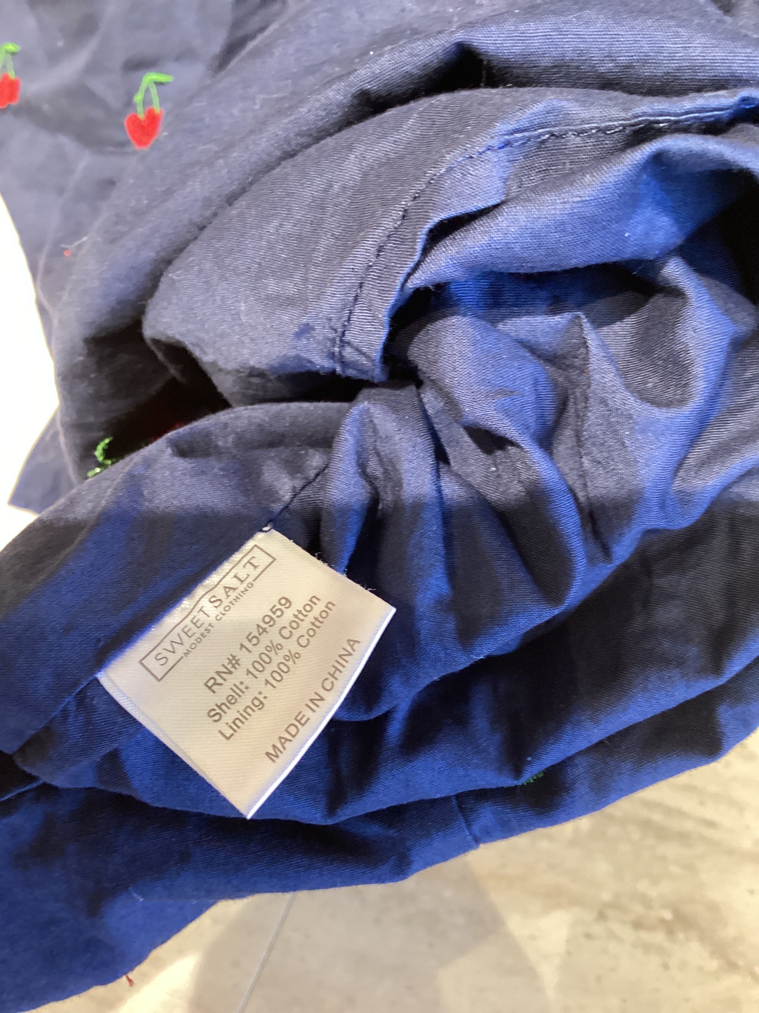 SWEET SALT Dress Women's Medium Navy Cherries Cotton Ruffle Sleeve. Perfect for Summer Party or Work.