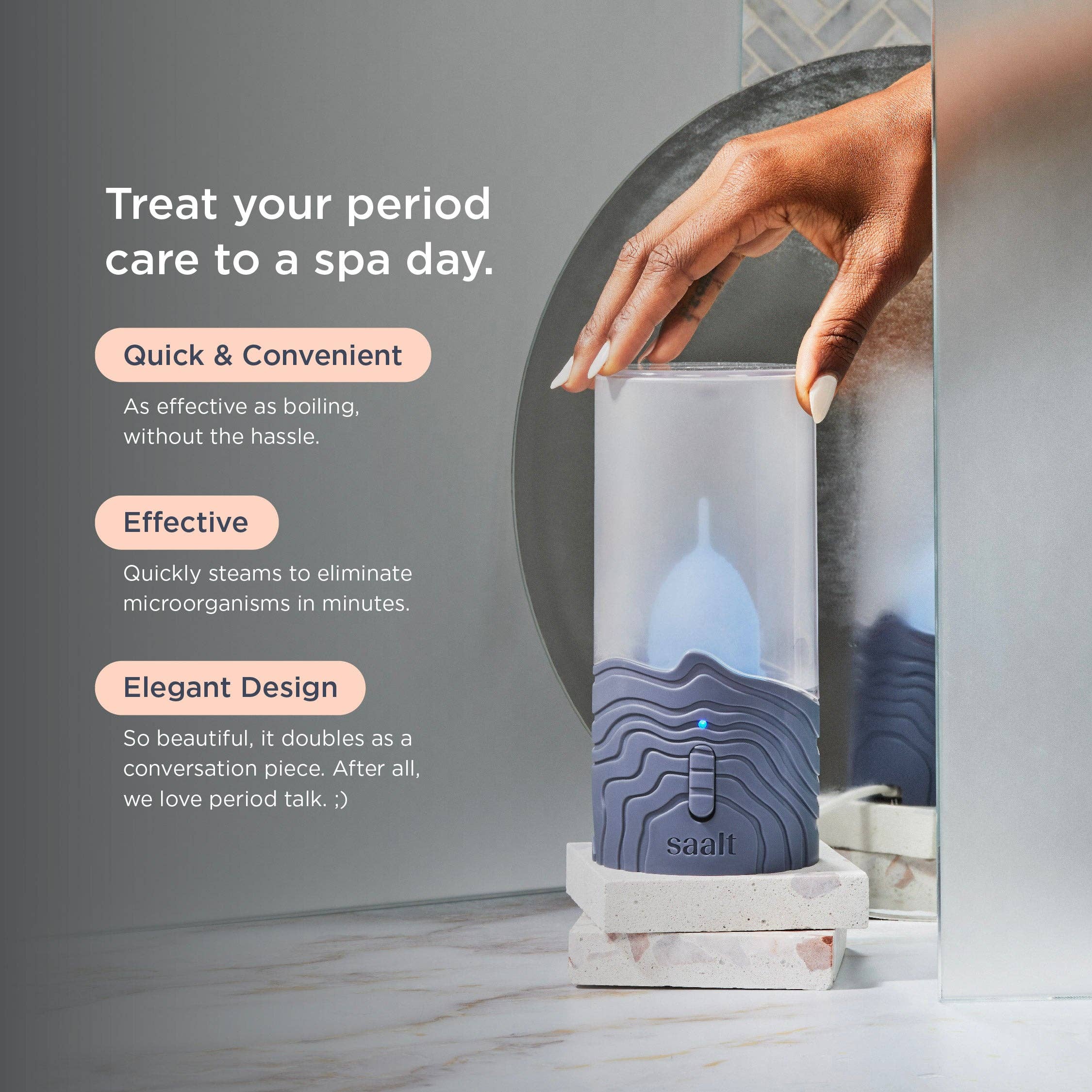 Now you can quickly and conveniently sanitize your cup or disc without the hassle of boiling. Just add clean water, click the start button, and voilá! As effective as boiling, without the hassle.