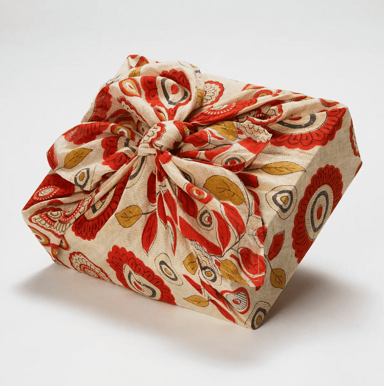 Give gifts beautifully and sustainably with the Zero-Waste Celebration Sari Gift Wrap—a vibrant, eco-friendly alternative to disposable wrapping paper. Made from upcycled sari fabric, each wrap is one-of-a-kind and can be reused as a bandana, scarf, or fabric gift wrap for years to come.