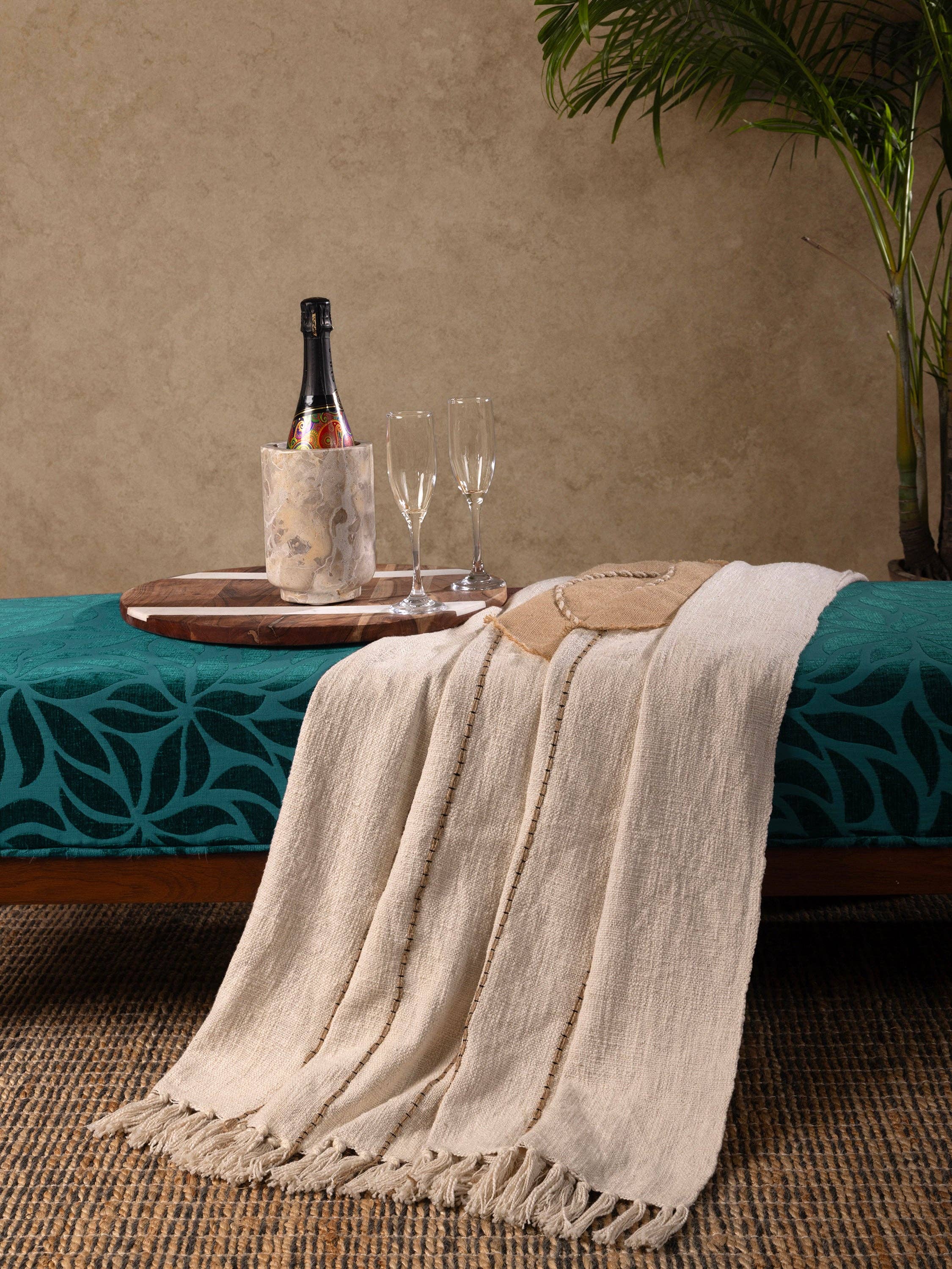 Handcrafted with intention, this throw offers both texture and ease. The 50″ × 60″ size drapes beautifully over sofas, beds, and reading chairs, while fringe detailing at each end adds an organic, lived-in finish. Lightweight yet substantial, it’s a year-round layer designed to soften a room without overwhelming it.